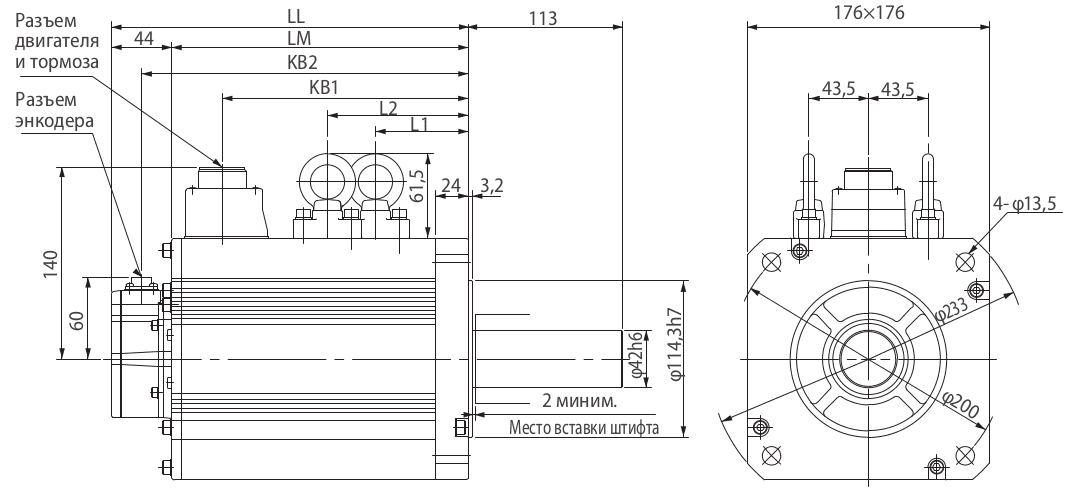 R88M-K3K010F-S2/BS2 - стандартный сервомотор, 28,7 Н·м, 3 кВт, 1000 об/мин, 400 В, 20-разр. инкрементный энкодер, прямой вал со шпонкой и резьбой, без тормоза / с тормозом.